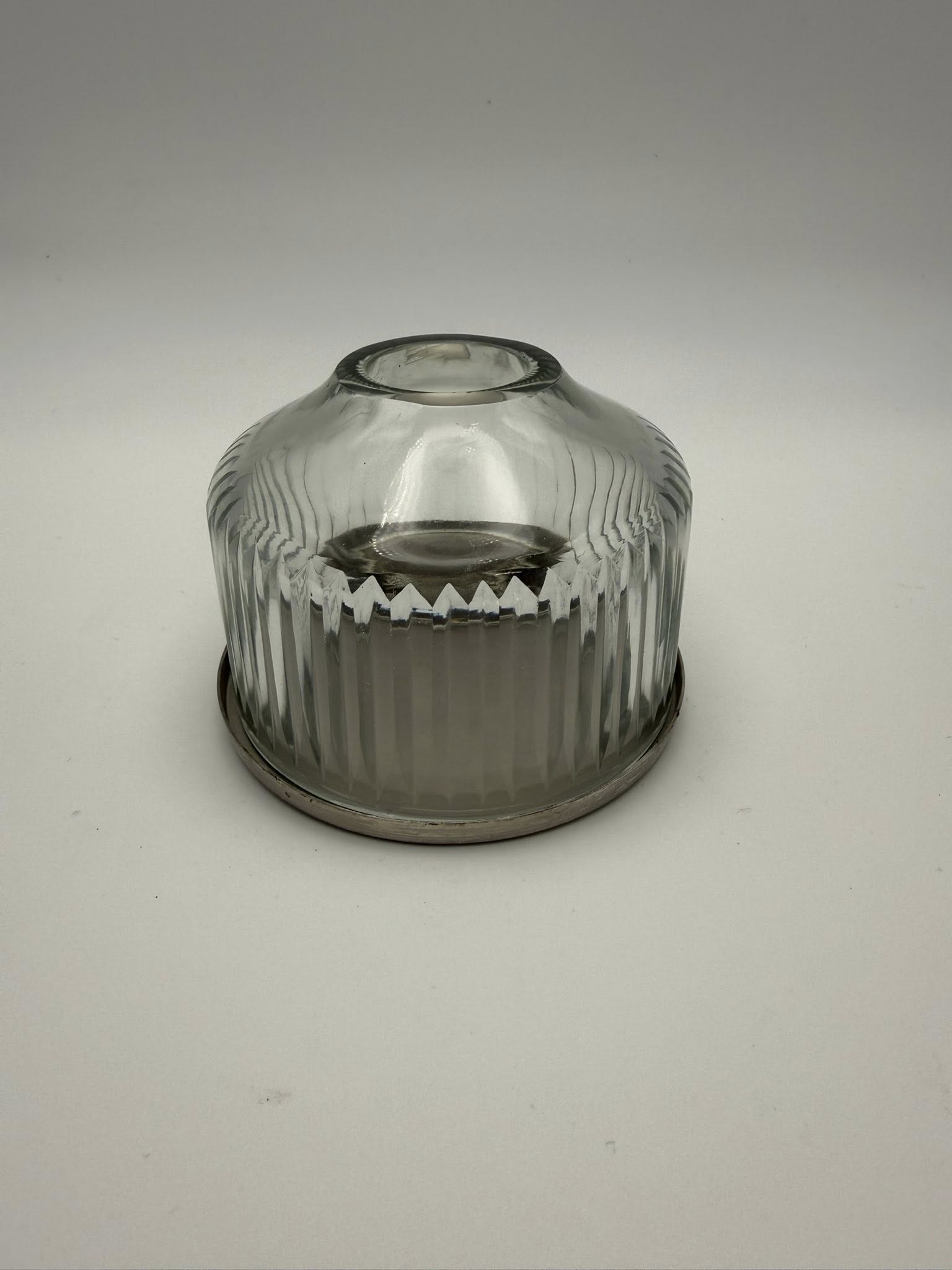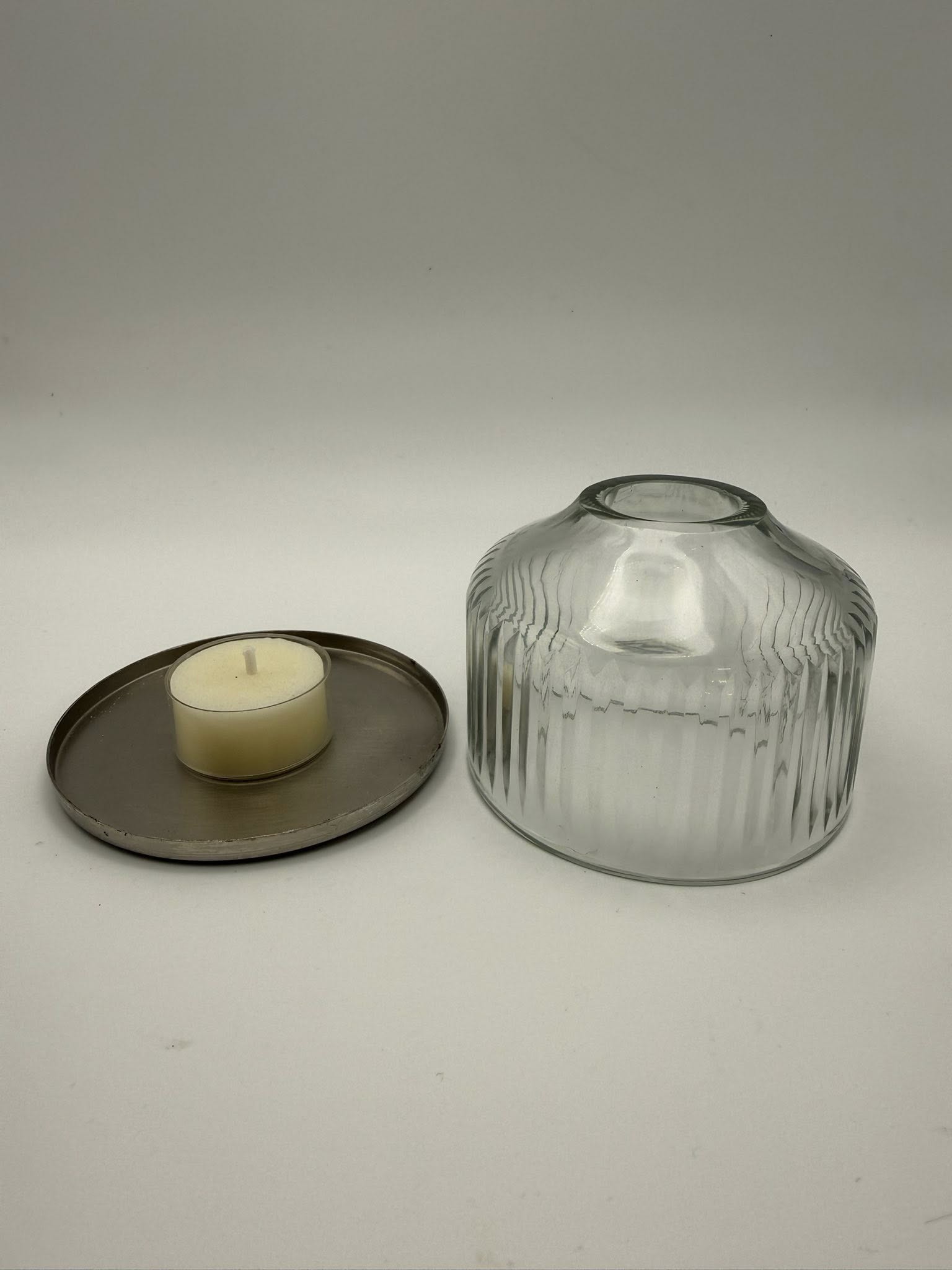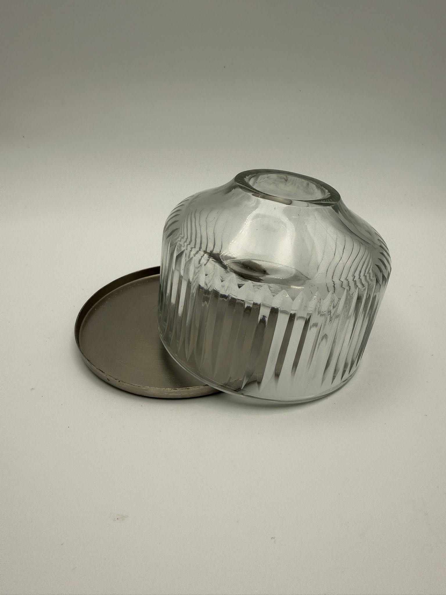 This handblown glass dome makes candlelight feel magical. The surface is etched with fine, Scandinavian-inspired lines that soften and scatter the glow, casting gentle shadows across nearby walls. Each vertical line is cut by hand, creating a subtle, rhythmic pattern that honours traditional craftsmanship and refined simplicity.